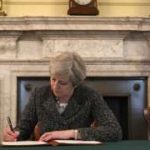 Ra'isal wasaaraha Ingiriiska, Theresa May, ayaa saxeexday warqaddii sida rasmiga ah UK ay ugaga baxaysay Midowga Yurub.