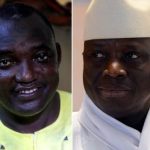 Yahya Jammeh,midig,waxaa doorashada kaga guuleystay, Adama Barrow, bidix Madaxweyna Yahye Jammeh ayaa horay...