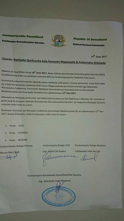 Natiijada qori tuurkan ayaa waxa goob joog ka ahaa madaxda sadexda xisbi qaran, isla markaana waxay saxeexeen natiijada soo baxday.