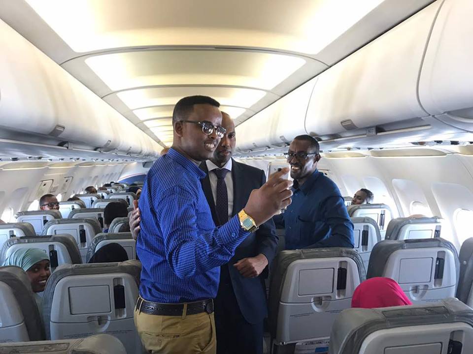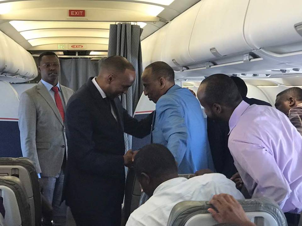 isaga oo dhamman rakaabka saarna diyaarada dusheeda ku salaamay
