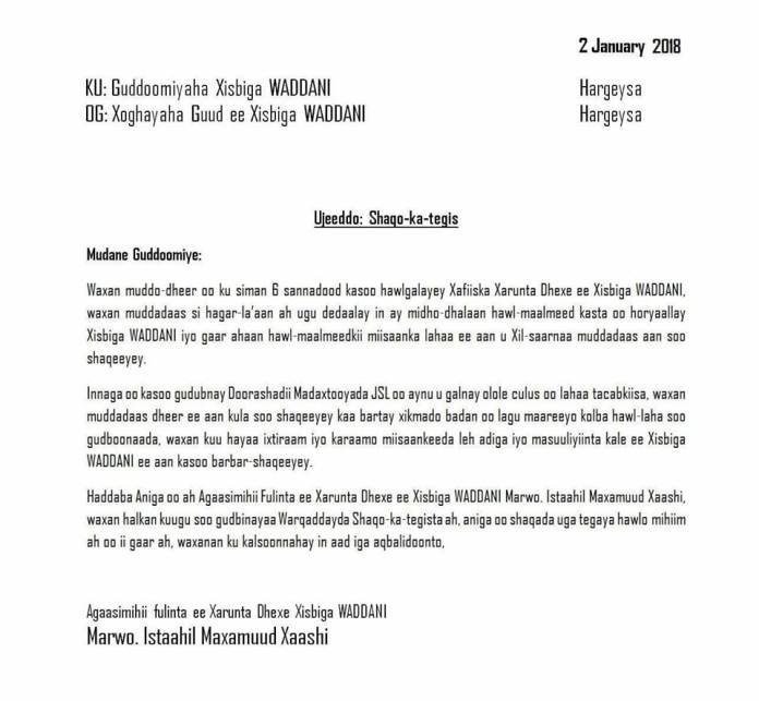 Agaasimihii Xarunta Dhexe Ee Waddani Oo Is Casishay