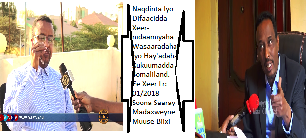 Halkan ka daawada kala fikir duwanaansho iyo fasiraadyo sharci oo isu jira naqdin iyo difaacid ku saaban xeer-nidaamiyaha dhismaha wasaaradaha iyo hay’adaha xukuumadda ee Somaliland, oo soo baxay 02/01/22018 isla markaana uu soo saaray madaxweynaha cusub ee Somaliland md. Muuse Biixi Cabdi.