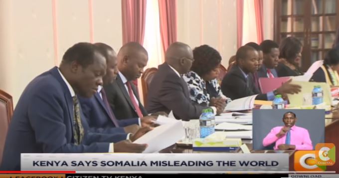 Nairobi-(GLN): Kulan uu golihiisa wasiirrada la yeeshay madaxweynaha Kenya Uhuru Kenyata, ayaa waxa ay ka soo saareen jawaab ay siiyeen dawladda federaalka Soomaaliya, oo nuxurkeedu yahay in ay dawladda Soomaaliya caalamka ka qarinayso xaqiiqada muranka xuduudda badda.