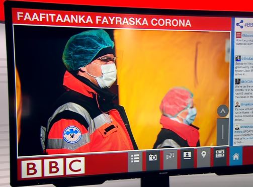 London-(GLN): Faafitaanka xanuunka Corona iyo dadka u dhimanaya, ayaa sare u kacaya caalamka oo dhan. Wararkii ugu danbeeyey ee faafitaanka xanuunka Coronavirus, waxa is ku soo dubbariday BBC Soomaali.