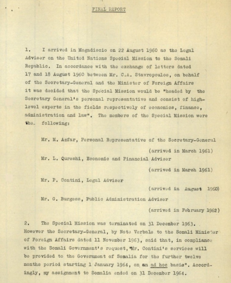 Qaramada Midoobay Oo Sheegtay In Sharciga Midowga 1960 Aanu Ahayn Mid Qaran oo Buuxa; Hawlgalkii La-taliyeyaasha UN-ka ee Soomaaliya (1960–1964)