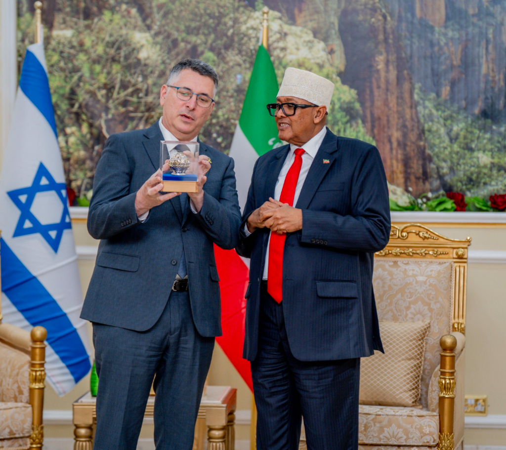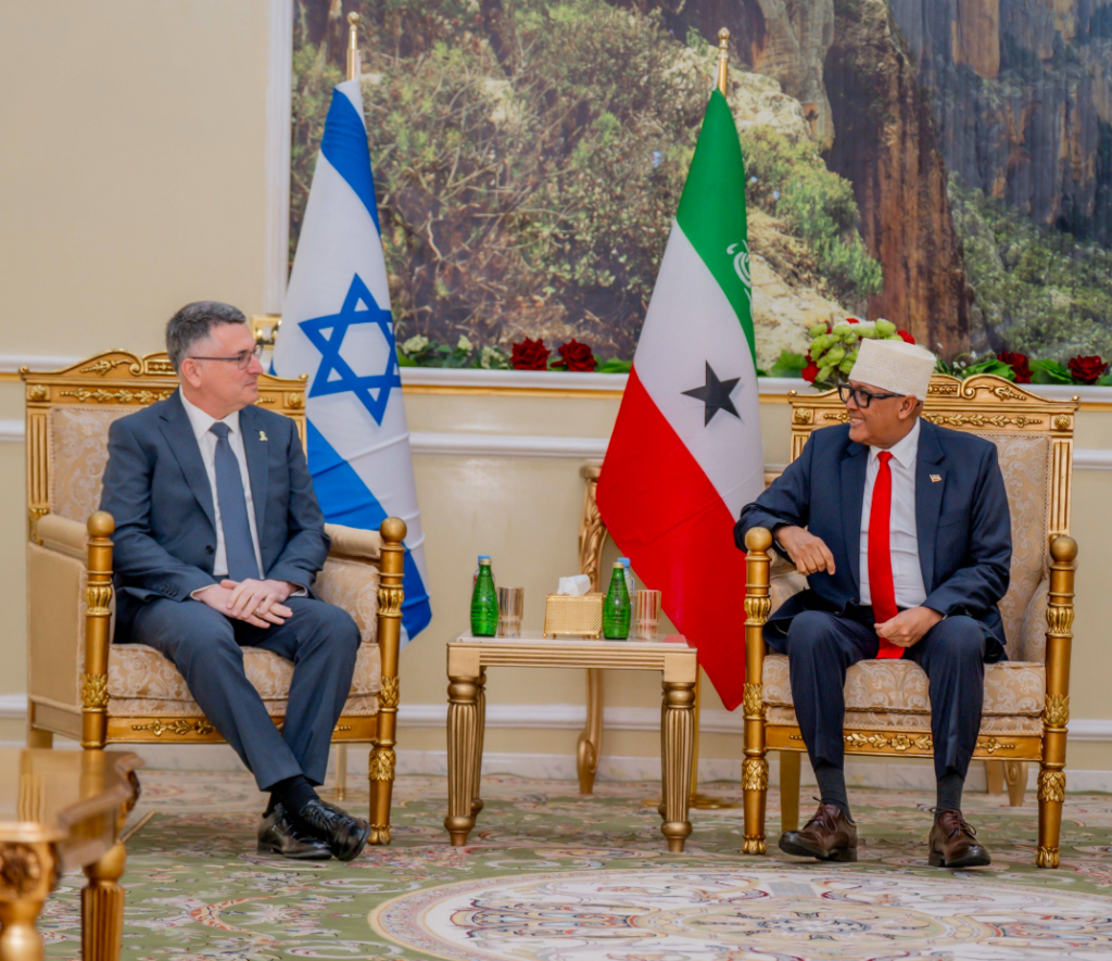 Madaxweynaha Jamhuuriyadda Somaliland, Mudane Cabdiraxmaan Maxamed Cabdillaahi (Cirro) ayaa maanta Qasriga Madaxtooyada JSL ku qaabilay Wasiirka Arrimaha Dibedda ee Dawladda Israaโiil, Mudane Gideon Saโar iyo wefti ballaadhan oo uu hoggaaminayo oo booqasho rasmi ah ku yimid Jamhuuriyadda Somaliland.