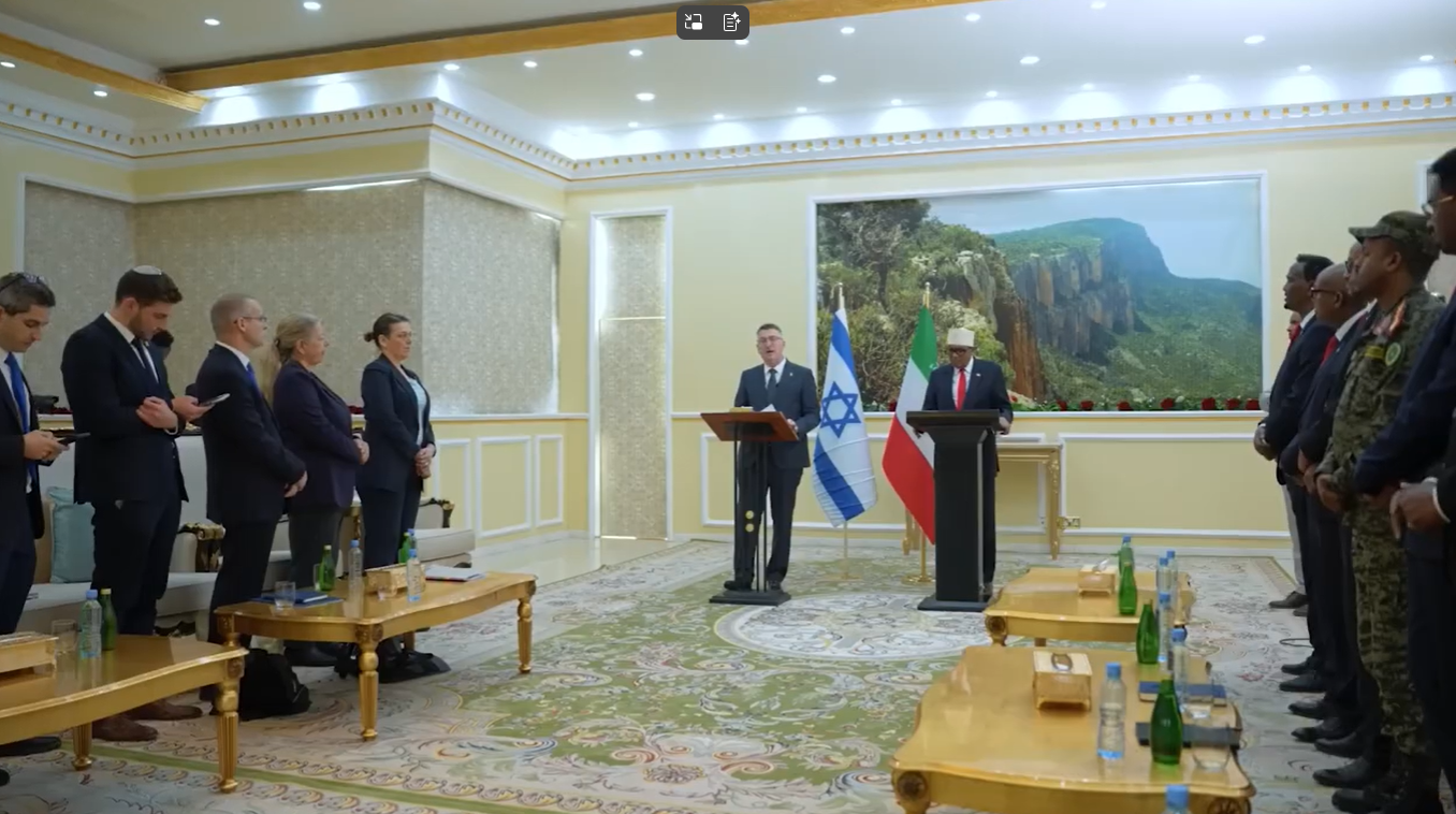 Hadaljeedintii Wasiirka Arrimaha Dibadda ee Israa’iil iyo bogaadintii madaxweynaha Jamhuuriyadda Somaliland, oo turjuman.